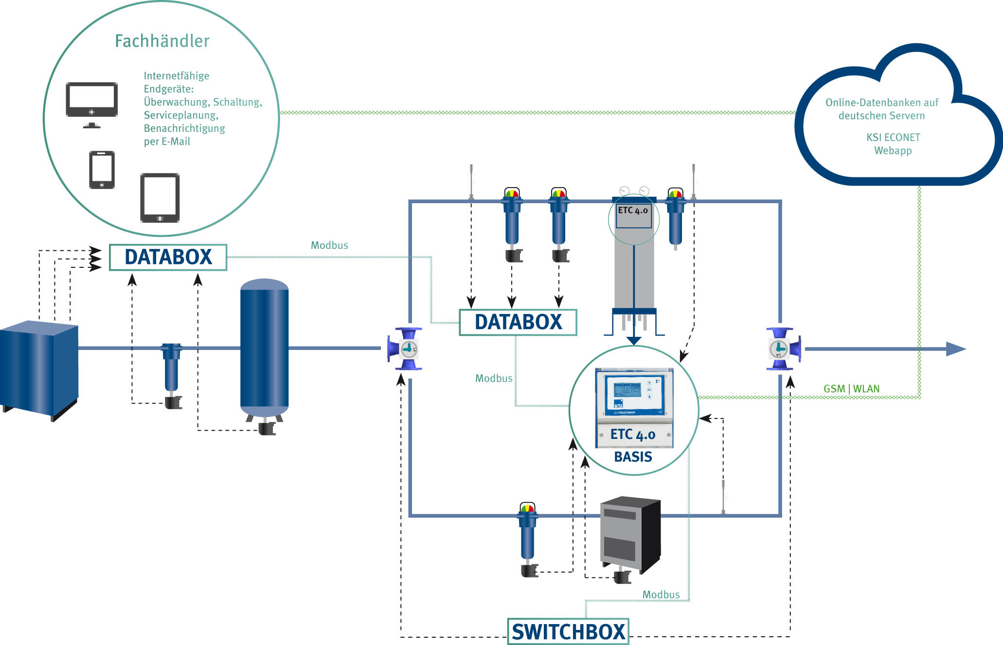 Spletni sistemski urejevalnik ECOCONTROL zagotavlja pot do nove dobe »Industry 4.0«: specializirani prodajalec lahko na spletu spremlja koncepte tako za manjše kot večje obrate, za preventivo z analiziranjem prikazanih podatkov, s čimer prejema kritične vrednosti, sporočene v poljubnem času in lokaciji, kot tudi za načrtovanje servisiranja vseh komponent na strateško smiseln način.